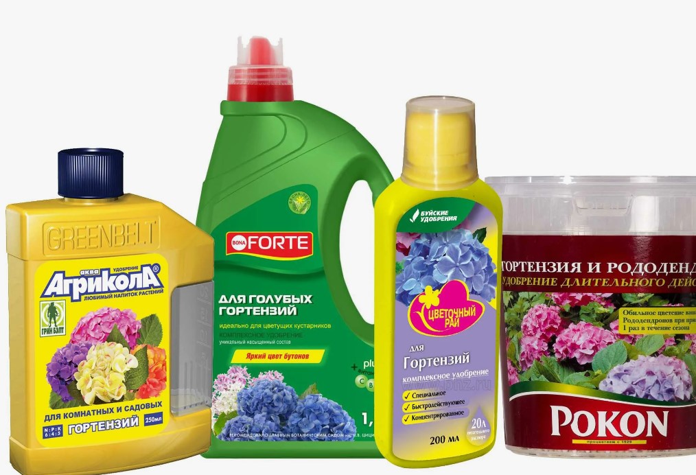 - Аквирин (Buiskie Fertilizers) е водоразтворим прах, използван за поливане на хортензии през лятото. Той обогатява почвата и подобрява нейния състав, като насърчава интензивното пъпкуване и продължителния цъфтеж.