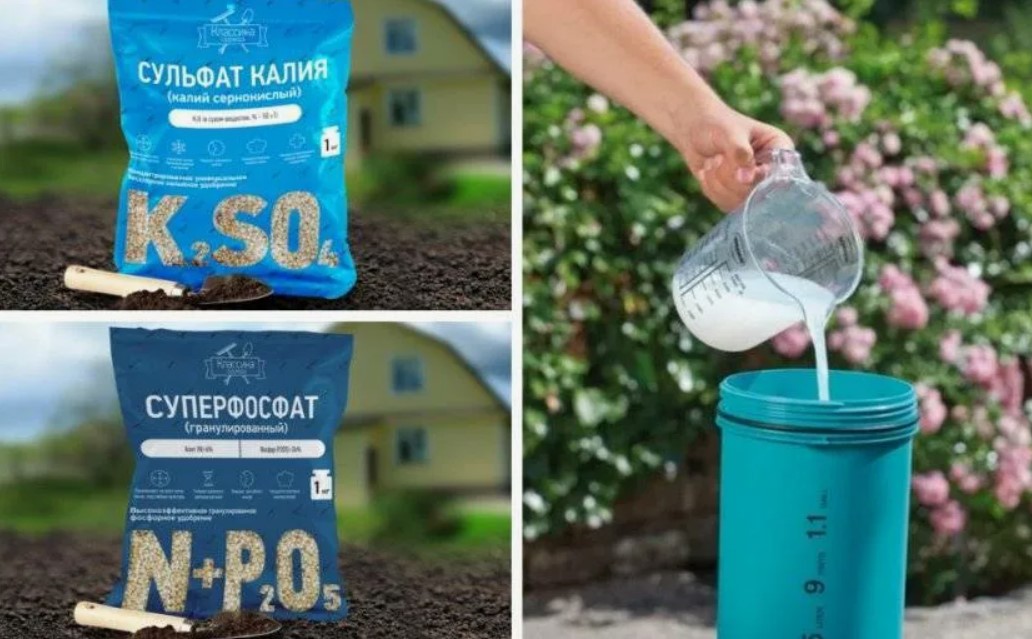 - Калиево-фосфорни торове. Те се използват за поливане на растенията по време на образуване на пъпки, за да се насърчи по-буен цъфтеж. Най-разпространените са суперфосфат (20 г на 10 л вода), двоен суперфосфат (10 г на 10 л вода) и калиев сулфат (20 г на 10 л вода). Калиевият сулфат понякога се заменя с калиево-магнезиев сулфат, който съдържа магнезий, от съществено значение за растенията.