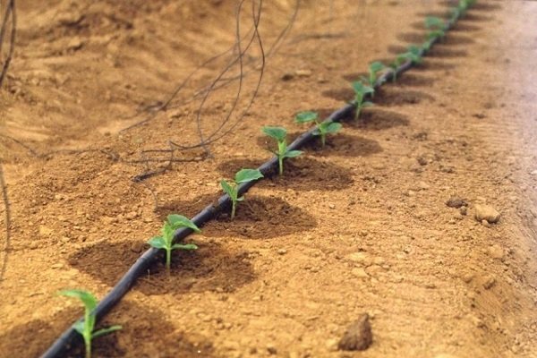 | НабразденПоливането се извършва само по засадените бразди и достига до растенията по гравитационен път.