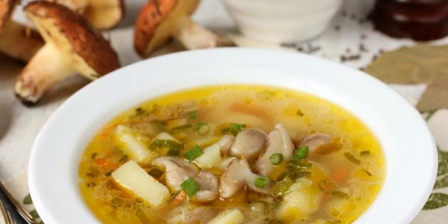 Изпържих пилешкото месо в тиган, сложих го в тенджера, заедно с нарязаните на кубчета картофи, ситно нарязания суров лук и малко морков. Залях го с вряща вода, подправих го със сол и черен пипер и го оставих да къкри на слаб огън. В друг тиган гъбите изпаряваха излишната течност. Когато картофите бяха наполовина готови, добавих маслените гъби и заквасената сметана (или масло) и оставих да къкри, докато стане готово.