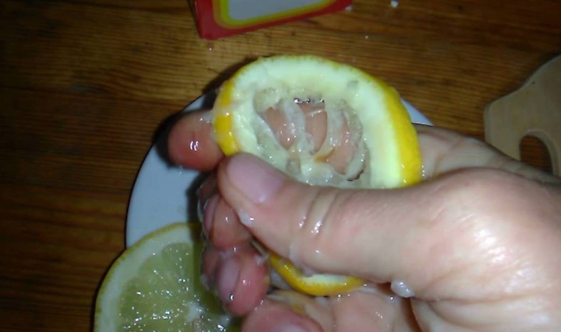 - Лимонена киселина. Разтворете едно пакетче киселина в 1 литър вода и накиснете ръцете си в нея за 1 минута. След това изплакнете обилно с течаща вода.