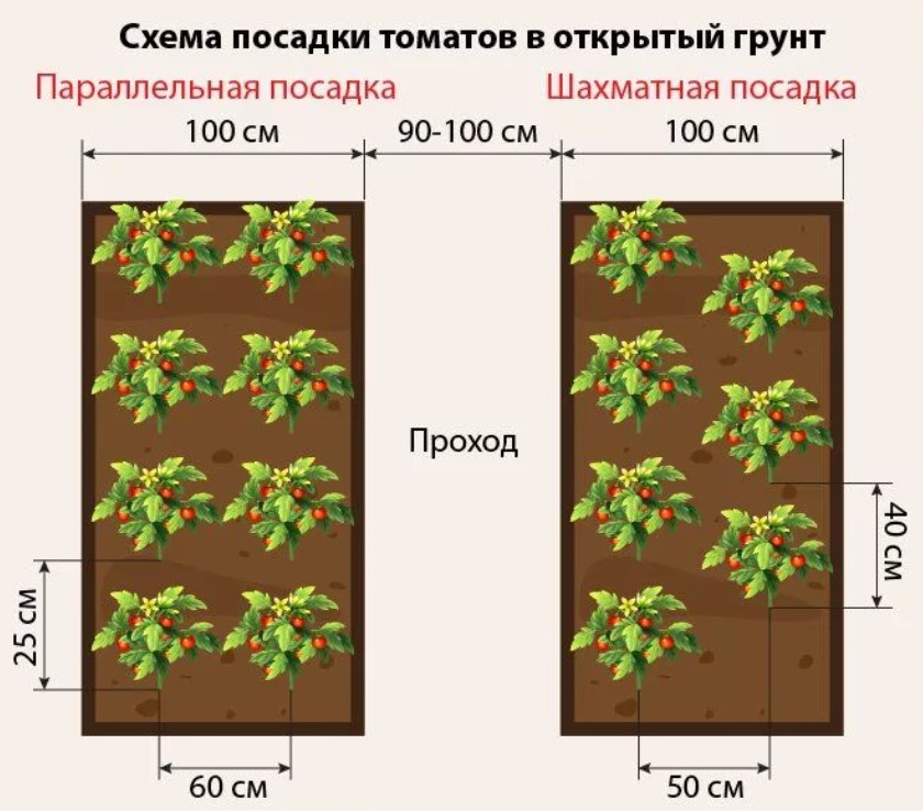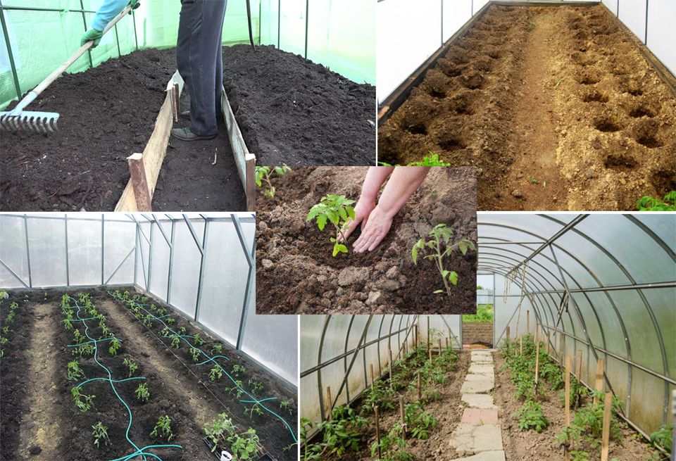 Доматите са чувствителни към студ, така че е важно да се подготвят повдигнати лехи преди засаждане. За да се ускори процесът на затопляне, покрийте почвата с тъмен пластмасов филм. Температурата на въздуха в оранжерията трябва да бъде поне 20°C. Разсадът се засажда по внимателно обмислен модел, определен въз основа на сорта домати. Особено внимание трябва да се обърне на разстоянието между разсадите: