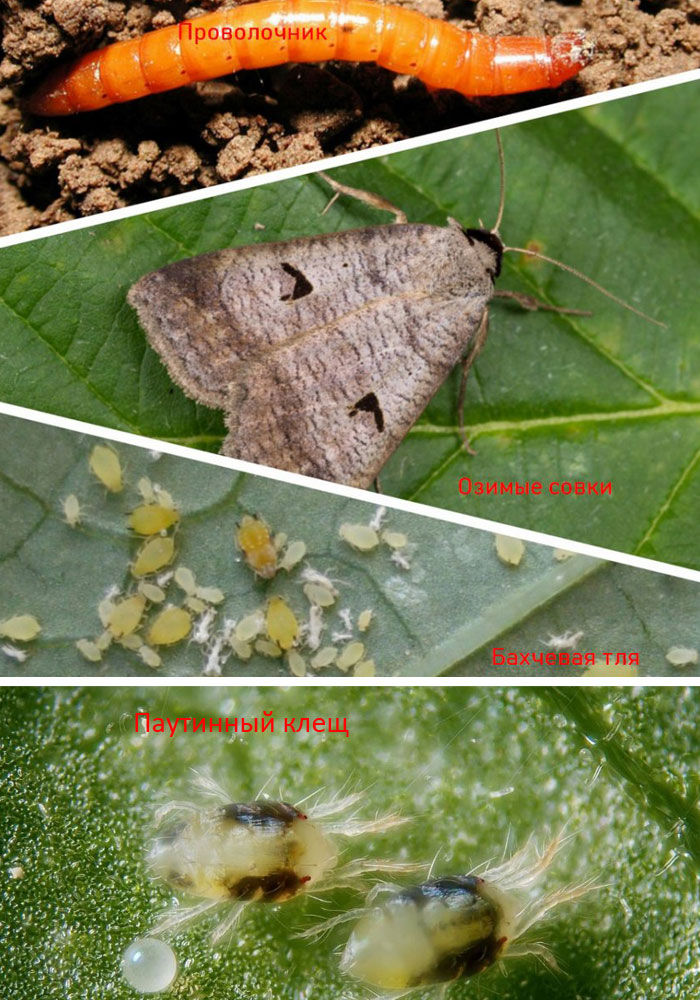 | Телен червей | Тези вредители са малки, кафеникави червеи, покрити с твърда черупка. Те живеят в почвата и причиняват сериозни щети на кореновата система. | Телените червеи виреят върху корените на многогодишните плевели, така че е важно редовно да се плеви районът. Растения като листата от горчица и боб са ефективни възпиращи средства. |