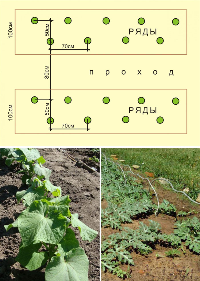Схема за засаждане на разсад от диня и пъпеш в открита земя или оранжерия