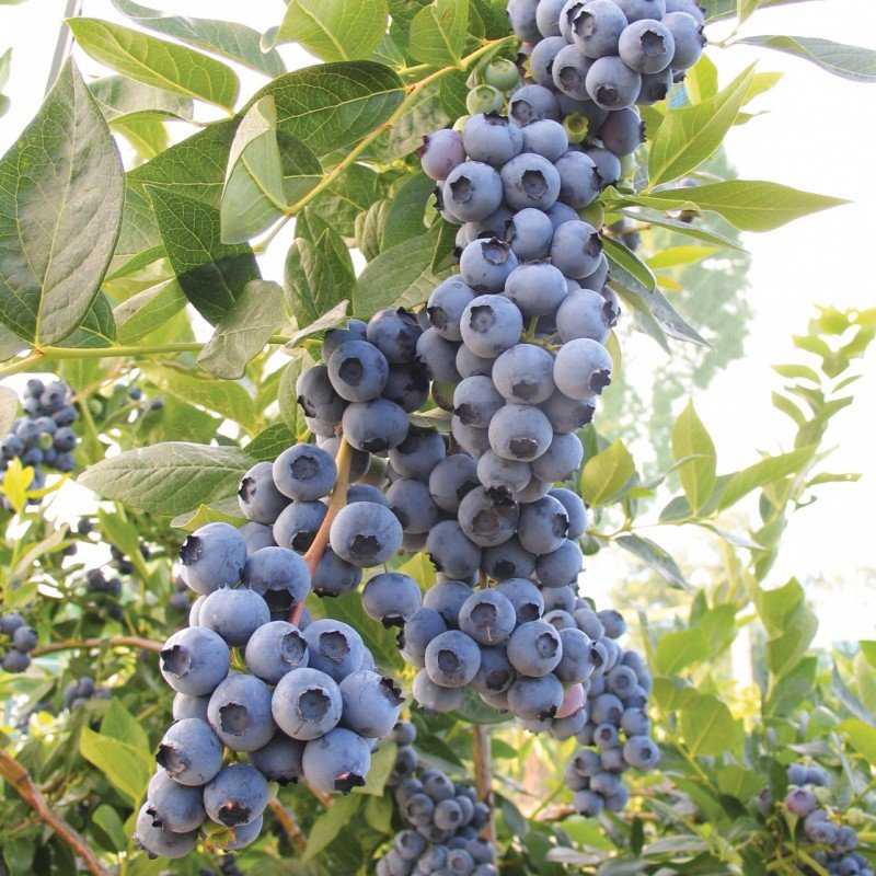 | Дюк | Храстът е висок до 2 м и широк до 1,7 м. Тъмнозелените листа стават червеникави или оранжеви през есента. Плодовете са плътни и подходящи за механизирано бране. Те са събрани на гроздове от 8-15 броя. Подходящ за средната зона. | Ранен сорт, плододава от последните десет дни на юни до началото на юли | 4,55 кг на храст | Изисква киселинна, добре дренирана почва. Обича осветени места. Устойчив на слани до -35°C. Изисква периодична резитба и торене. |