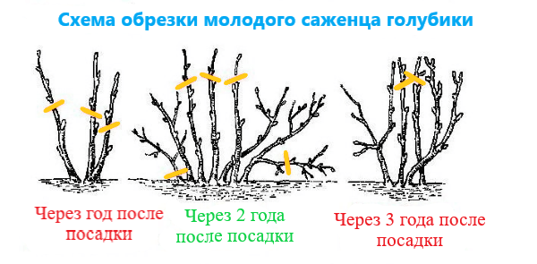 Погрешно е да се мисли, че резитбата се извършва едва след като храстът достигне 3-4 години. Опитните градинари препоръчват да се подрязват боровинките, докато са още млади, ако надземният растеж е твърде голям. В идеалния случай храстът трябва да има два силни вертикални издънки и малък, неразклонен растеж.