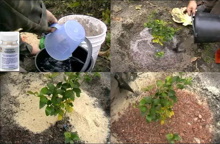 Запълването на дупката за засаждане с торф за алкализиране на почвата не винаги е възможно. Затова градинарите са измислили алтернативен метод. Дупката се запълва с почва и се добавят градинарски подкислители. Те се продават в специализирани магазини и лесно се разреждат съгласно инструкциите.