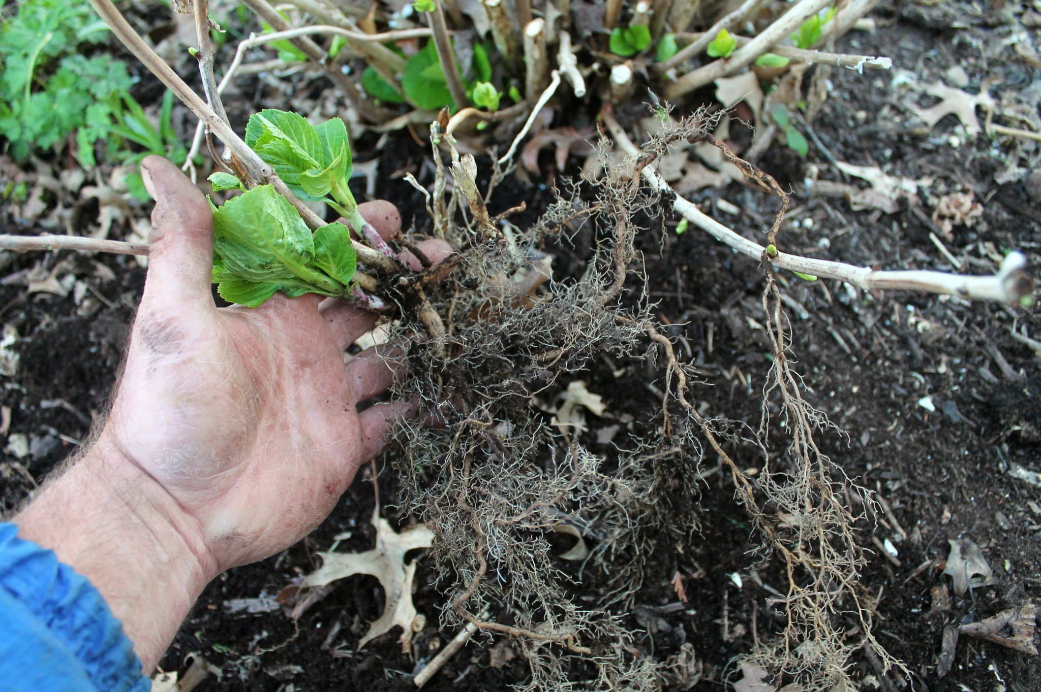 Когато засаждате през есента, внимателно огледайте разсада. Трябва да се засаждат само растения с напълно развити корени; в противен случай хортензията няма да има време да се установи правилно, преди да настъпят студовете.