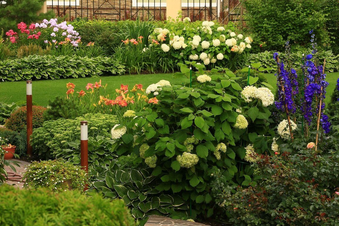 - Необходимо е да се остави известно разстояние между хортензията и пътеките, тъй като тежките съцветия се огъват.