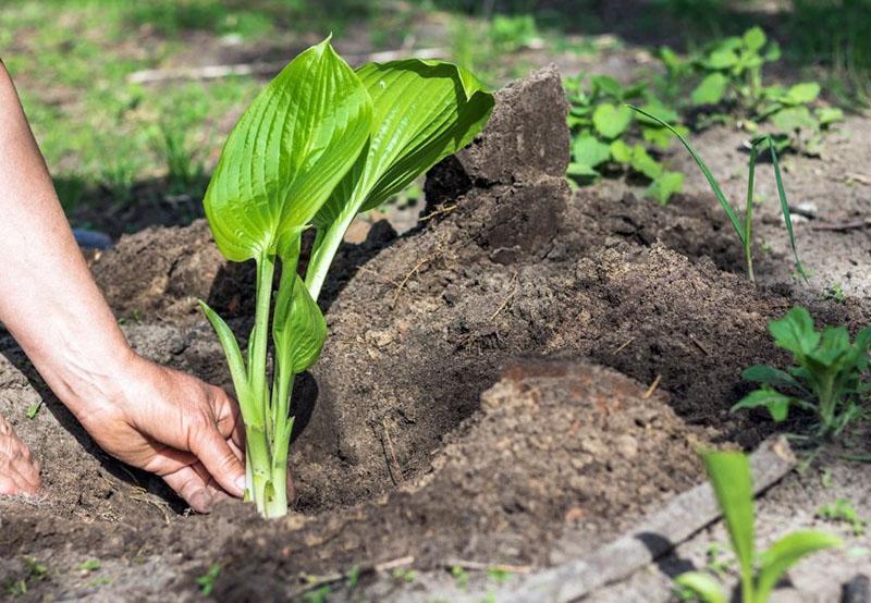 Корените на хостата са разположени на повърхността, така че подготовката трябва да се основава на ширината на цветната леха, а не на нейната дълбочина.
