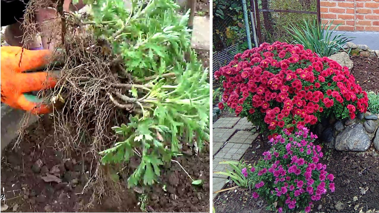 Процесът на пресаждане на хризантеми през есента