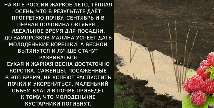 Есенното време е идеално за малини. Преди да настъпят първите слани, кореновата система има време да се адаптира и укрепи, оставяйки достатъчно време за образуване на нови корени.