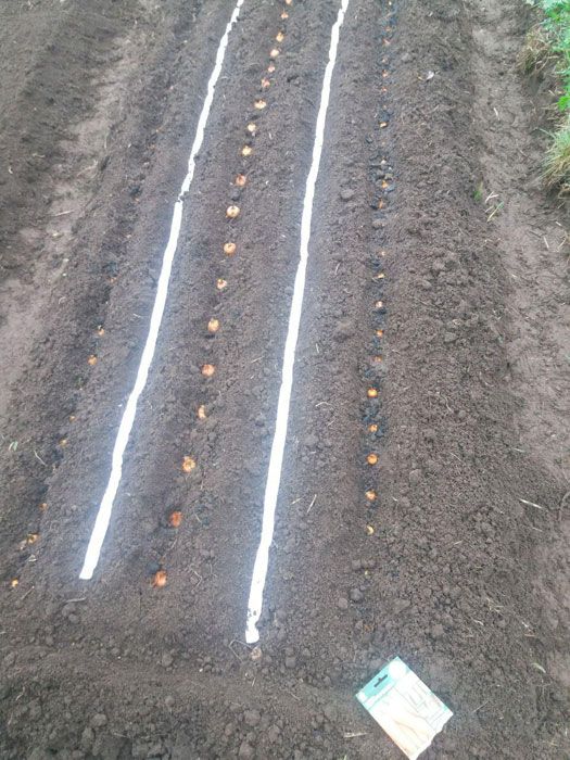 Във всяка леха правя бразди на разстояние около 15-20 см една от друга, дълбоки 3-5 см, в зависимост от това какво засаждам. За по-едрите лукчета ги правя по-дълбоки.