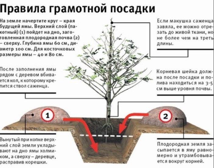 - След това корените на дърветата се покриват с почва, внимателно уплътнена, за да се предотврати образуването на подземни кухини в дупката.