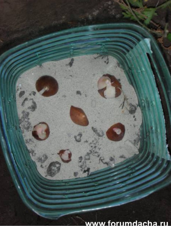 Те не трябва да се притискат твърде дълбоко в почвата, а да се поставят с дъното надолу, откъдето ще расте коренът.