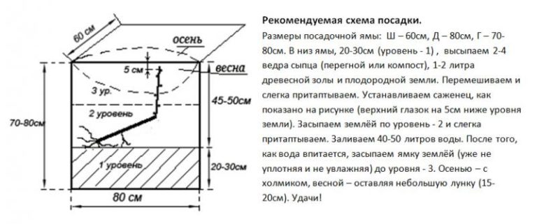 Много е важно при засаждането на какъвто и да е разсад, независимо дали е контейнерно растение или лоза с отворена коренова система, да се гарантира, че след засаждането остават поне 10 см под нивото на земята.