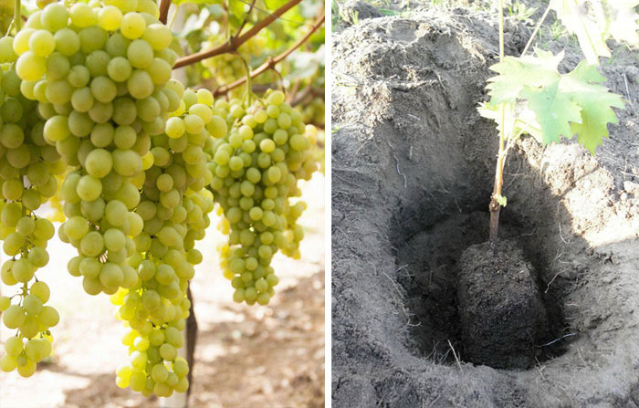 Почвата за гроздето трябва да е пропусклива за въздух и влага. Тя трябва да съдържа достатъчно хранителни вещества, така че ямата за засаждане се подготвя 35-45 дни преди засаждането.