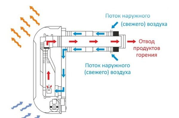 Парапетна система - продуктите от горенето влизат в коаксиална тръба, която се полага през външната стена.