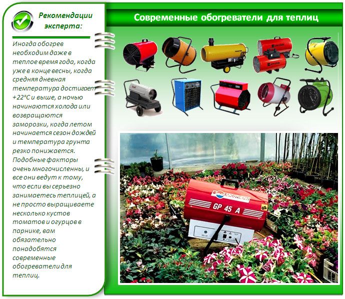 - 1 Опции за отопление на оранжерии и тяхното сравнение в таблицата