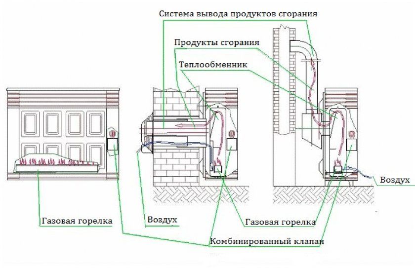 Каминската система включва вертикален комин, който служи за отвеждане на продуктите от горенето навън.