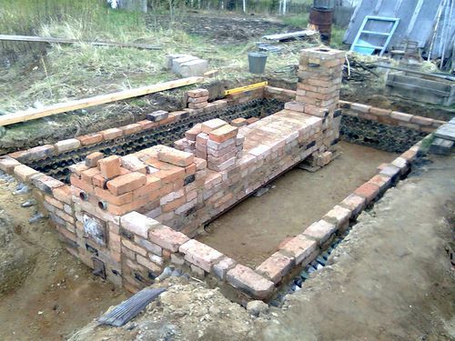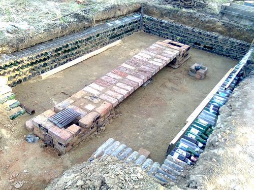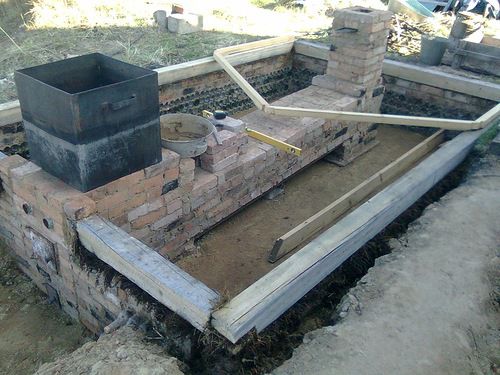 Първият етапВ преддверието на оранжерията трябва да се изгради фундамент, върху който след това ще се постави тухлена горивна камера.