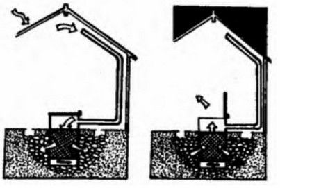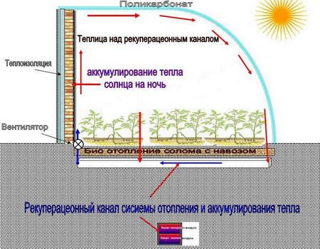 За да се създаде такава система, е необходимо внимателно да се обмисли разположението на въздушния колектор, за да се осигури циркулация на въздуха. За да се гарантира независимото движение на въздушните маси, входът трябва да бъде разположен по-високо от изхода. Това ще позволи на топлия въздух да се издигне и да влезе в оранжерията, докато охладеният въздух ще се върне към колектора, където ще се затопли и ще повтори цикъла.