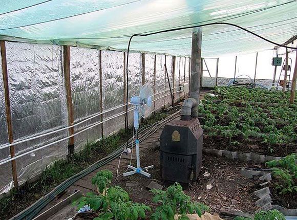 - Друг начин е да използвате газов конвекторТова създава въздушен поток, който циркулира в цялата оранжерия. Недостатъкът на този метод е, че трябва да се монтират газови тръби и растенията трябва да се поставят на достатъчно разстояние от конвектора. Освен това, този метод изгаря кислород, така че е необходима правилна вентилация.