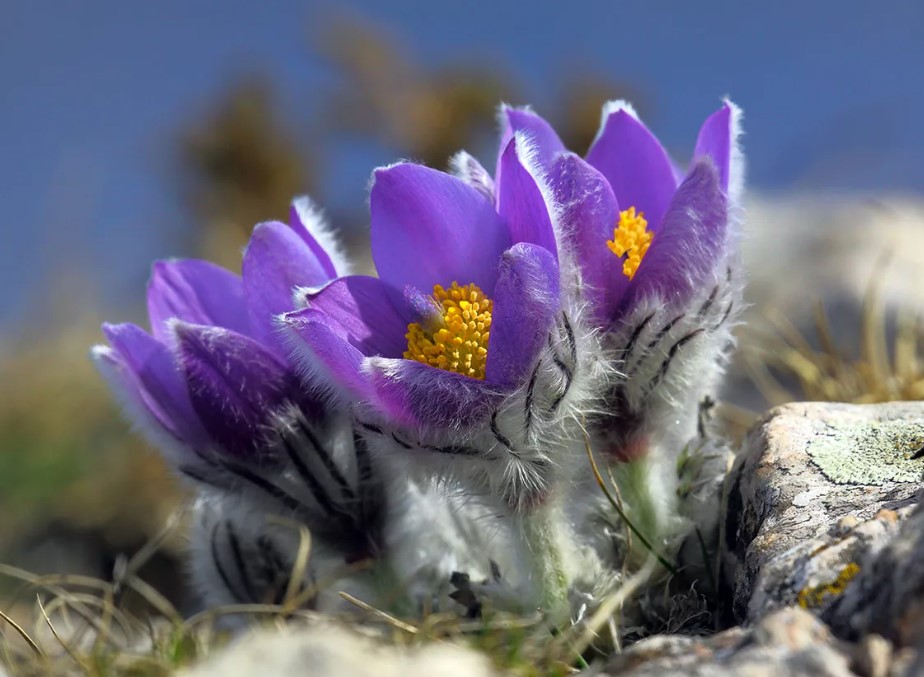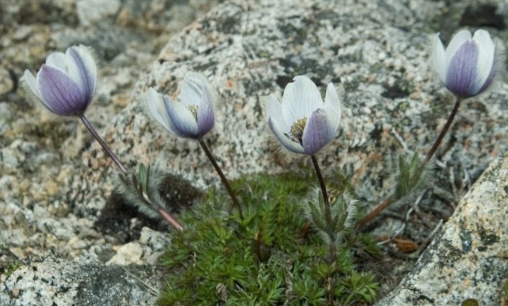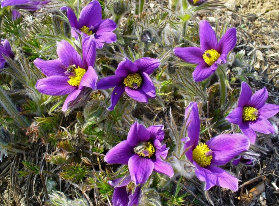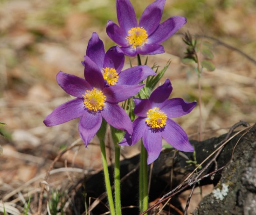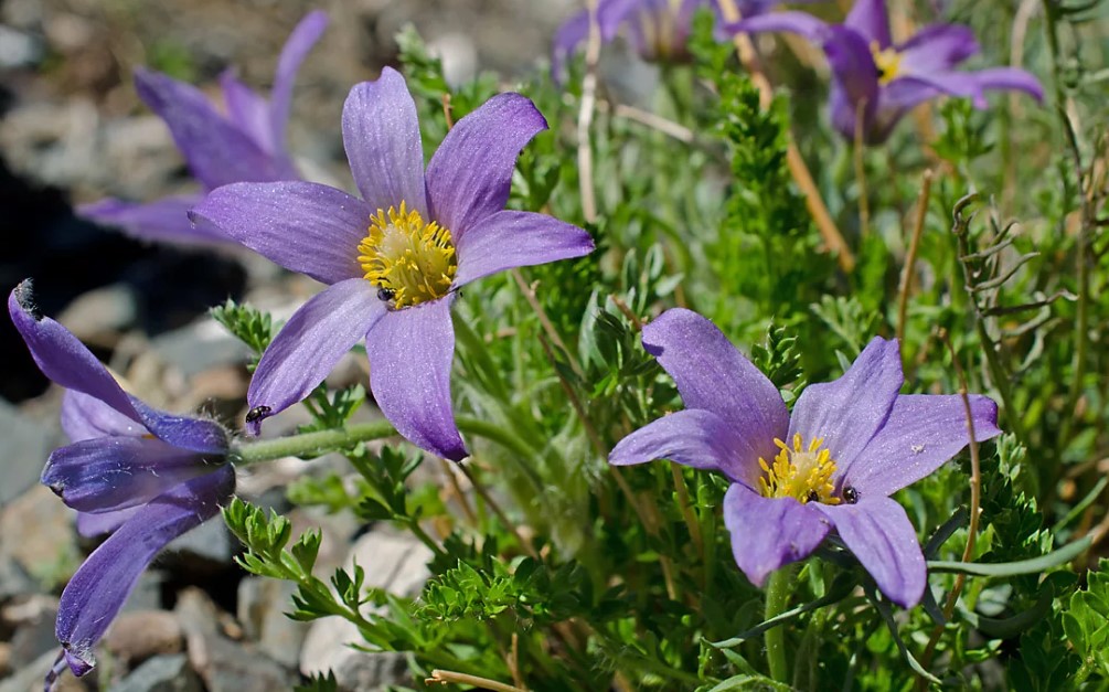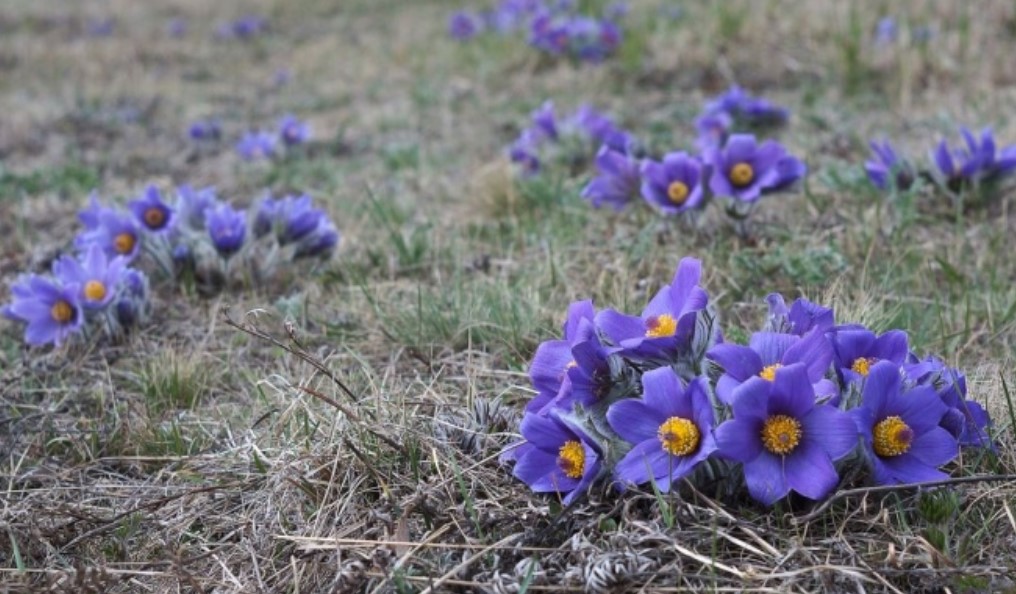 Расте до 7-15 см. Коренището е многоглаво, здраво, тъмно и вертикално разположено. Стъблата са изправени с гъсти, но меки власинки. Околоцветникът има синьо-виолетови, рядко бели или жълти листчета. Цъфтежът започва през април и завършва в края на пролетта. | Северна и Централна Европа, страни от бившия СССР, Азия, Северна Америка. |