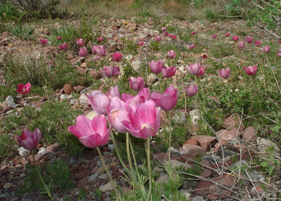 Расте до 12-20 см. По време на плододаване се увеличава до 32 см. Цветовете са едри, с обиколка 5,5-6 см. Те са розови на цвят и окосмени отвън. | Ендемичен за Централна Азия. | |