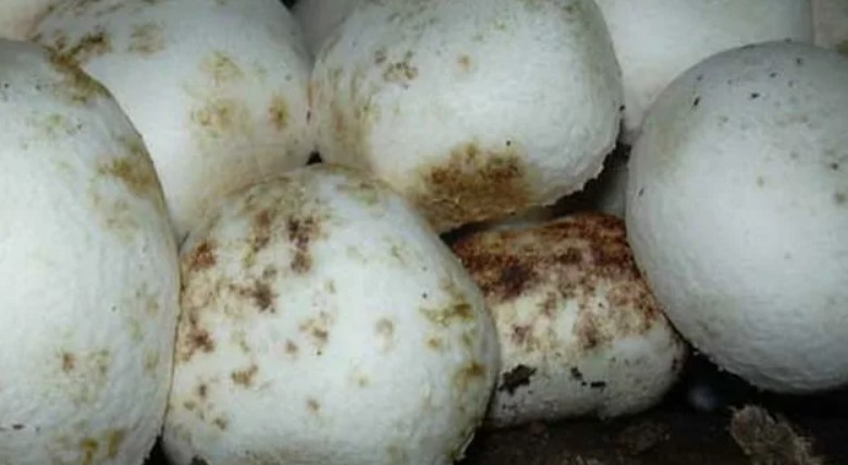 По време на промишленото отглеждане, спори на мухъл може да са попаднали в гъбите, които са останали незабелязани, докато не са били изложени на благоприятна среда. Ако условията за съхранение не са спазени, в топла и влажна среда, спорите на мухъла започват да се размножават, прониквайки в месестата част, което води до видим мъх по повърхността.