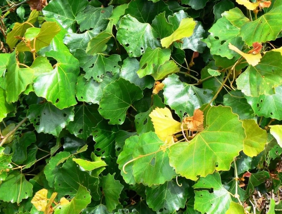 Отличава се с гъсти, окосмени издънки и пипала, които на допир са като кадифе. С напредване на възрастта растението, власинките по стъблата постепенно изчезват. В дивата природа може да достигне височина до 7 м (като храст) и до 20 м (като лоза). Листата са заоблени с цели и леко назъбени ръбове. Повърхността им е леко вълниста и с наситен, тъмнозелен цвят. Горната повърхност на листа е гладка, докато долната страна е покрита с червеникаво-кафяви власинки.