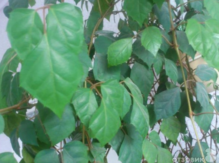 Растението Rhoicissus се нарича домашна бреза, защото листата му са много подобни на тези на руската бреза. Те са малки, овални, заострени на върха и леко назъбени по краищата.