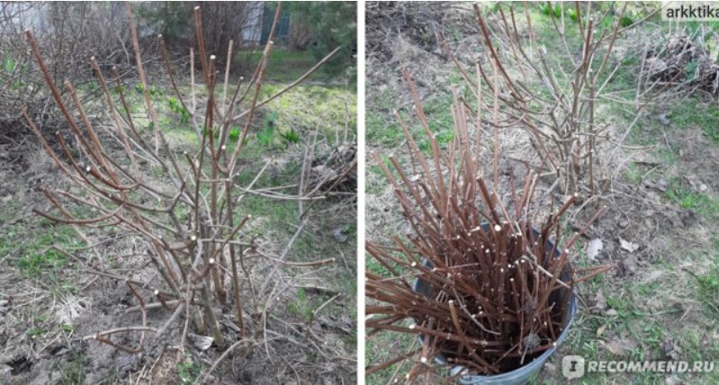 Хортензиите не се събуждат веднага. Листата може да не започнат да се развиват до края на май, но преди това храстът трябва да бъде подрязан с поне 1/3 от дължината си.