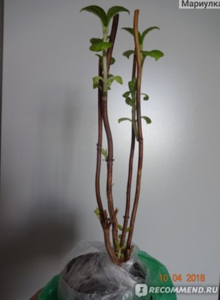 Този сорт хортензия ми хареса толкова много, че през пролетта на 2014 г. купих още две (от друг разсадник). Струваха по 250 рубли всяка.И първия, и втория път разсадът беше със затворена коренова система, в контейнери.