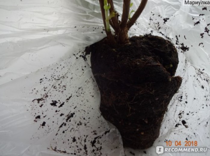 Кореновата система беше плътно опакована в целофан. Беше закупена през април и засадена на постоянното си място през май.
