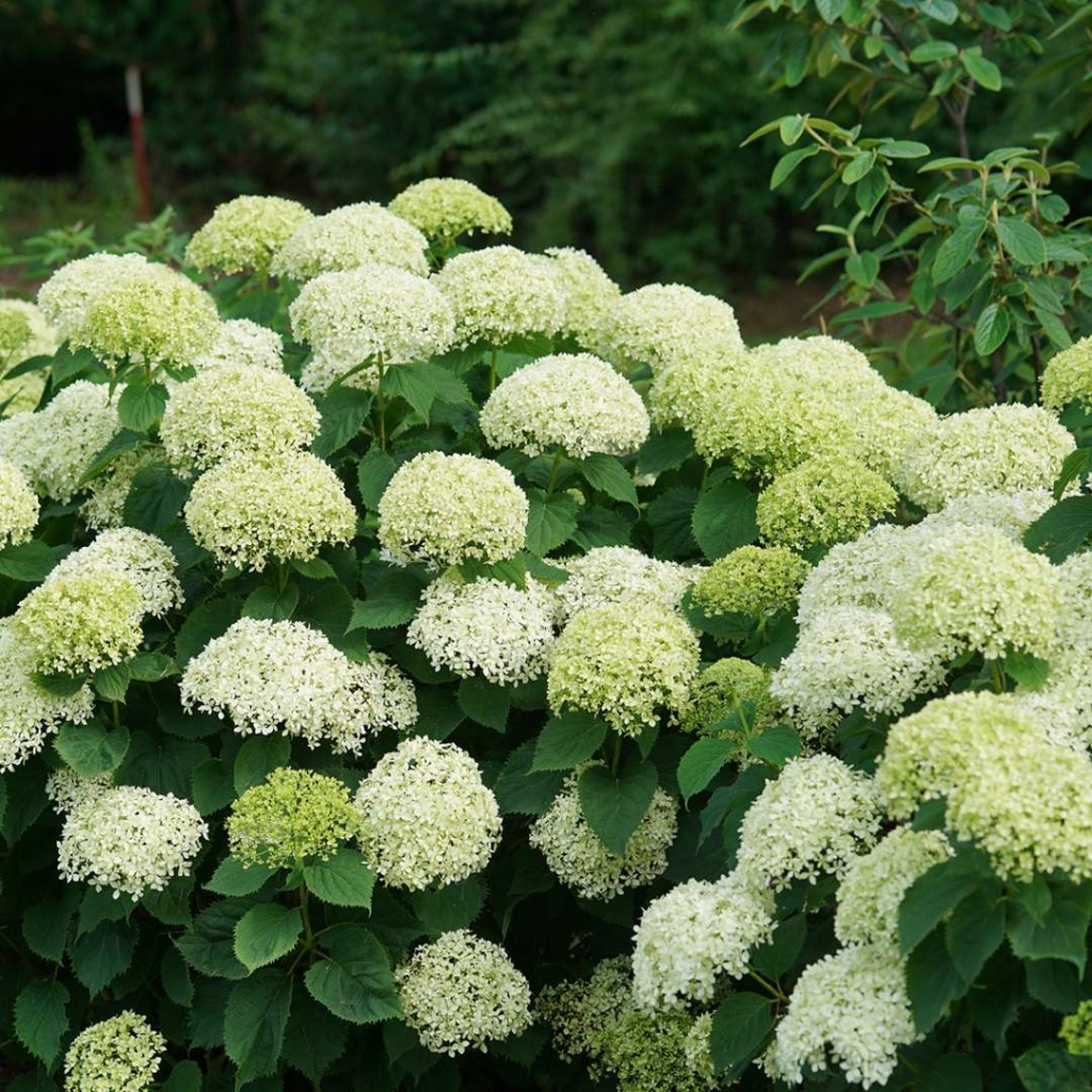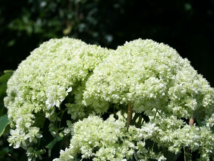 Компактен храст, достигащ 300 см. Стъблата са прави и здрави. Листата са широки, заоблени, светлозелени, с назъбени ръбове и заострен връх, леко увиснали. Кореновата система е добре развита, така че растението се характеризира с вегетативно размножаване. Този вид често се използва като жив плет. | Малки цветове, с дължина 1,5-2 см, образуват заоблен купол на върха на стъблото. Метлицата достига около 15 см в диаметър. Венчелистчетата са лъскави и яйцевидни. Цветът е бял или бежов. | Invisible Spirit, Sterilis, Annabelle, Grandiflora. |