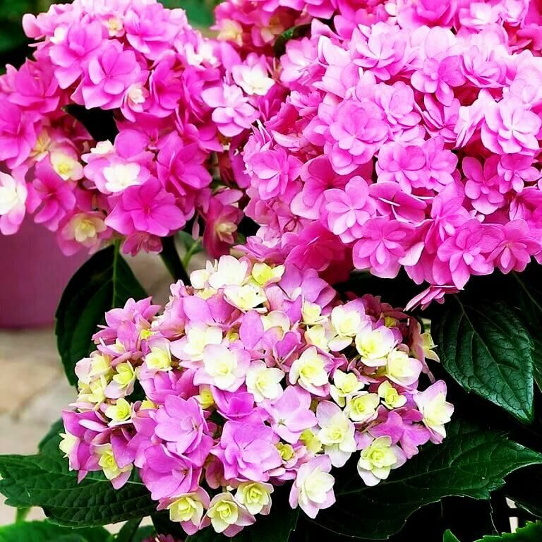 Комбинацията от розово и бяло придава на храстите на хортензията невероятно привлекателен външен вид, което ги прави невероятно красиви и нежни.