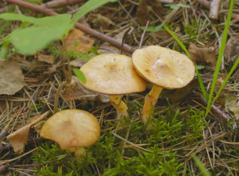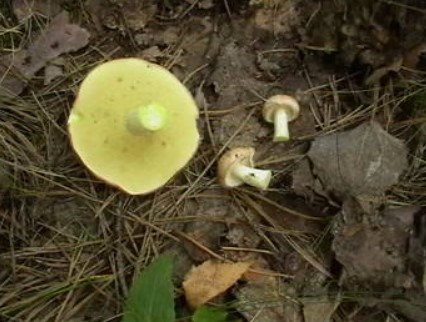| Шапката е с диаметър до 14 мм. Първоначално е полукръгла, със сгънати краища, като с узряването си придобива форма на възглавничка. Цветът се променя от сиво-жълт до оранжево-червен. Кожицата е трудно отделяща се от месестата част. Дръжката е висока до 9 см, лимоненожълта, потъмняваща в основата. | Европейски страни, Русия (Кавказ, Сибир). Расте в борови гори. | Юли-октомври. | Мариноване. |