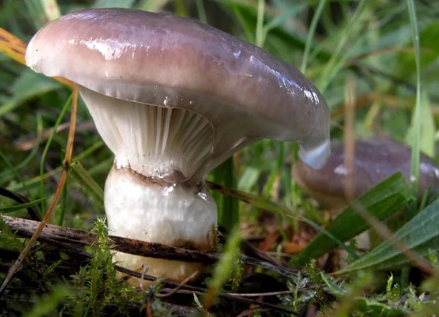 | Шапката е с диаметър до 8-10 см и е с кафяво-лилав, синкав или сивкав цвят. Месото е крехко и се рони веднага след бране, което затруднява транспортирането. | Расте във влажни иглолистни гори на Русия, Украйна и Беларус. | Условно годни за консумация. | Форма на гъба. | Основната разлика е, че хименофорът е ламеларна, а не гъбеста. |
