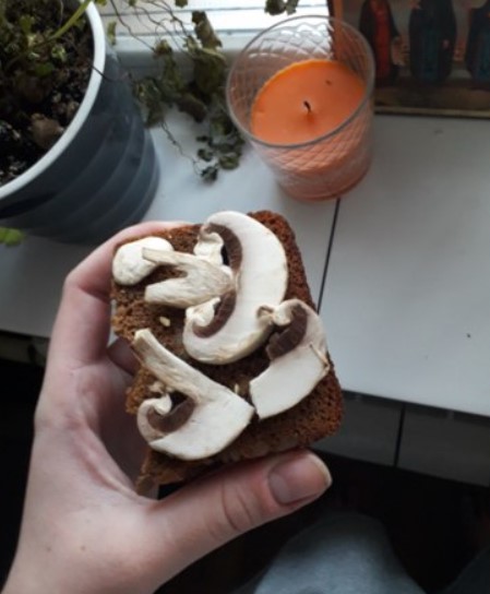 Когато бях гладен, си правех сандвичи с хляб Лента (има много добър K-BJU, по-малко калории от белия или черния хляб и повече протеини) и сурови гъби, и ги поръсвах с подправки. Беше вкусно и сега ще го правя дори без диета.