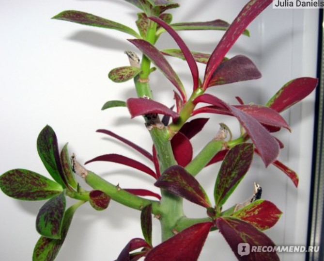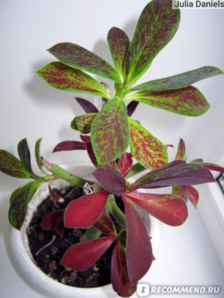 има интересен цвят на листата, за разлика от Synadenium Grantii