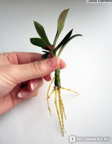 Бях абсолютно възхитен. Самите листа станаха сочни и придобиха свеж зелен оттенък. Корените пораснаха много бързо. И всичко това се случи не през пролетта, а в началото на есента!Синадениум Рубра, размножаване
