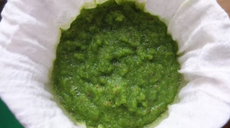 За да приготвите сместа, изплакнете няколко пресни люспи от покриви в студена вода. Смелете ги на паста с помощта на блендер или хаванче. Увийте ги в сгъната тензух и изстискайте бистрия сок от растението в стъклен съд с ръце. Добавете голяма лъжица ябълков оцет и 5 грама натурален мед. Разбъркайте до гладкост.