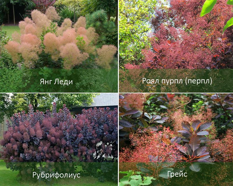 | Рубрифолиус | Това е топлолюбив сорт димно дърво, но можете да опитате да го отглеждате в Московска област, като го покривате по време на слани. Има овални листа с виолетово-лилав цвят. Достига височина от три до пет метра. |