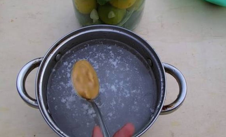 - Пригответе саламура, като добавите сол, захар и горчица на прах към водата.