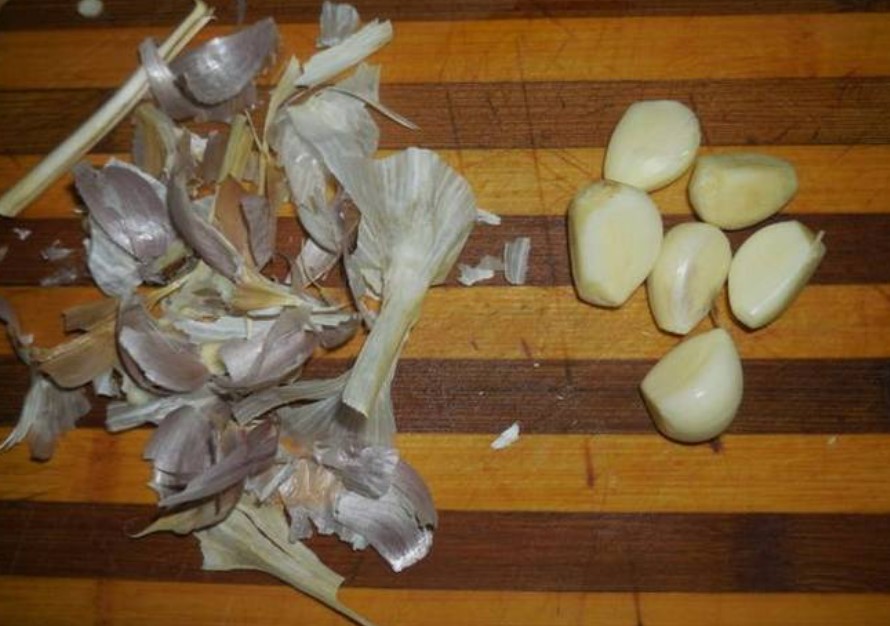 - Нарежете всяка скилидка чесън на 4 парчета.