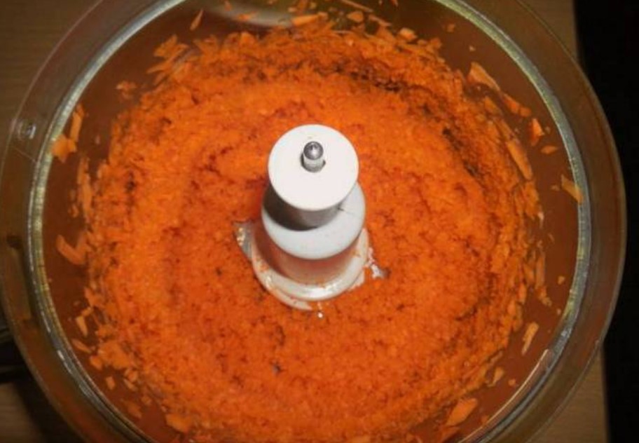 - Изберете сладки и сочни моркови, обелете ги и ги нарежете в блендер.