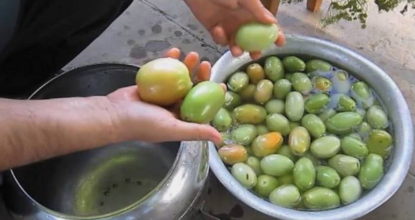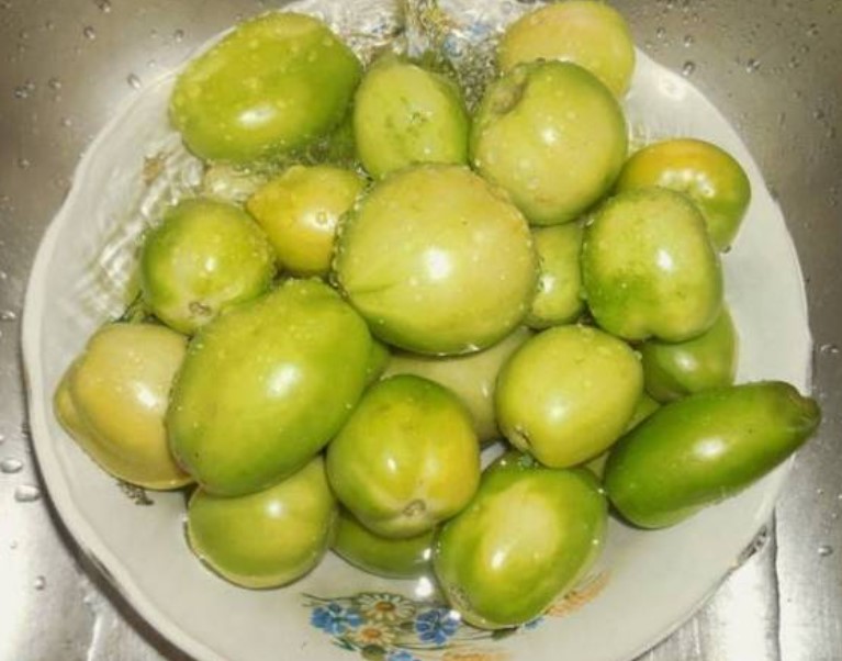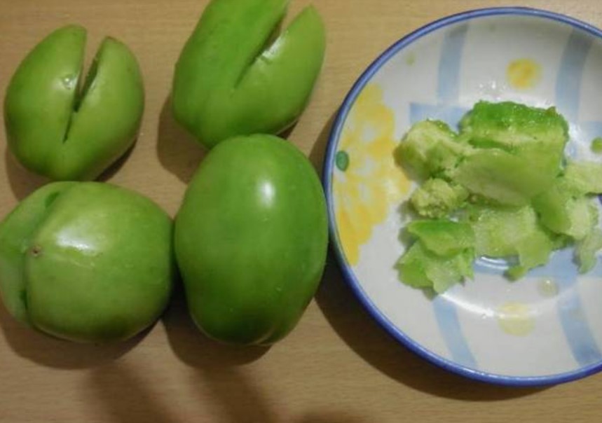 - Измийте добре зелените домати, след това ги подсушете и направете няколко дупки с клечка за зъби.