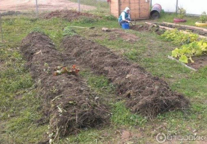 Пролетта дойде, тревата расте бързо, има излишък, хвърляме я върху лехите, след няколко дни се превръща в слама, а сламата е необходима на червеите, защото е храна за тях.