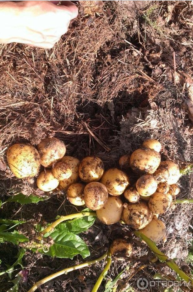 От години отглеждаме картофи в сено в нашата вила! Методът е прост: просто окосявате тревата и получавате сено. Не изисква много усилия и основното е, че не е нужно да копаете стотици метри с лопата и след това да го натрупвате на хълм. Картофите са много добри и вкусни. Така че, картофите Адрета са добри както на вкус, така и на качество.